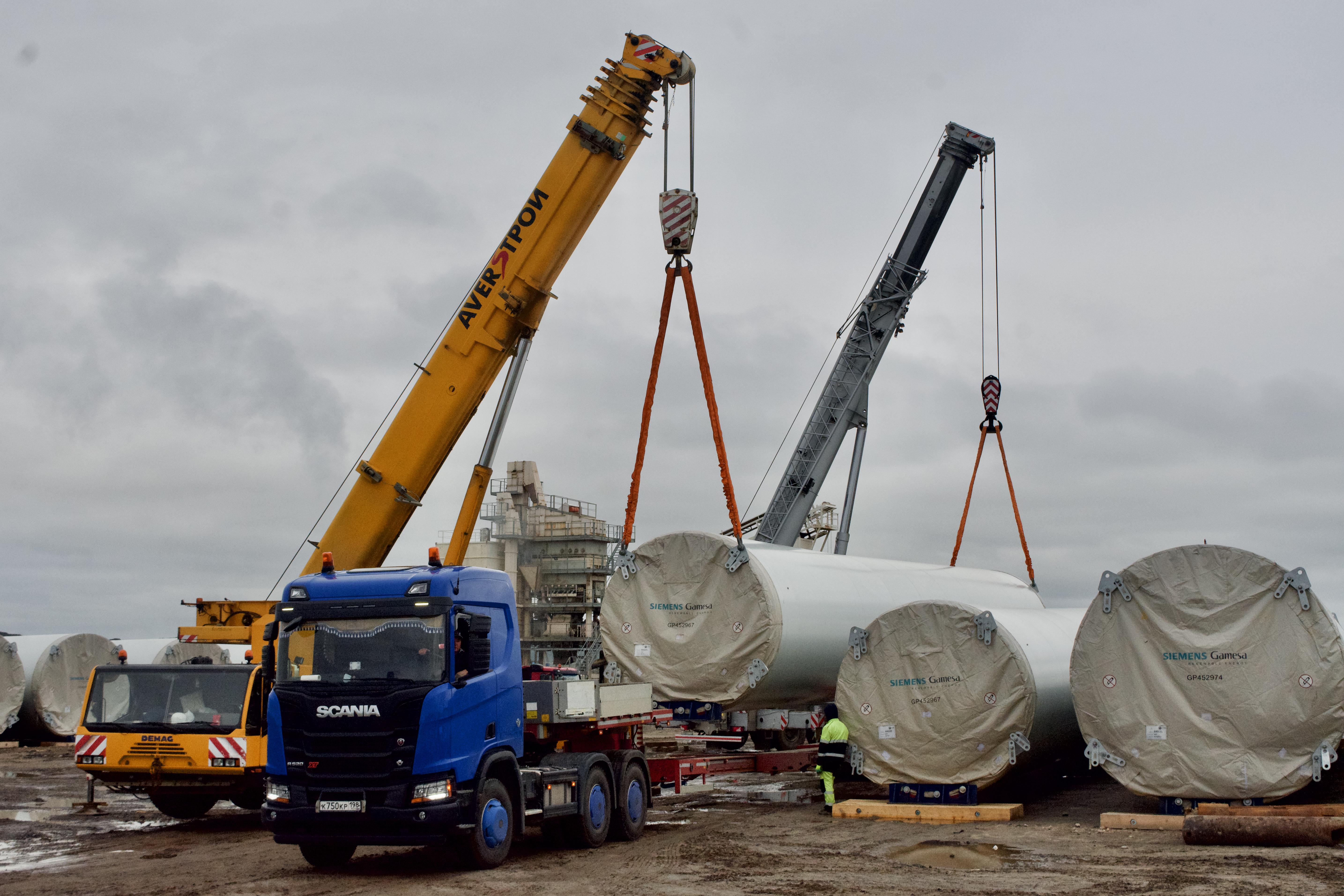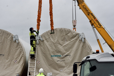 - Самая тяжелая часть ветрогенератора – это гандола. Мы перевезли 57 гондол, масса единицы – 69.342 кг при перевозке, а при погрузке – 77.342 кг с учетом траверсы