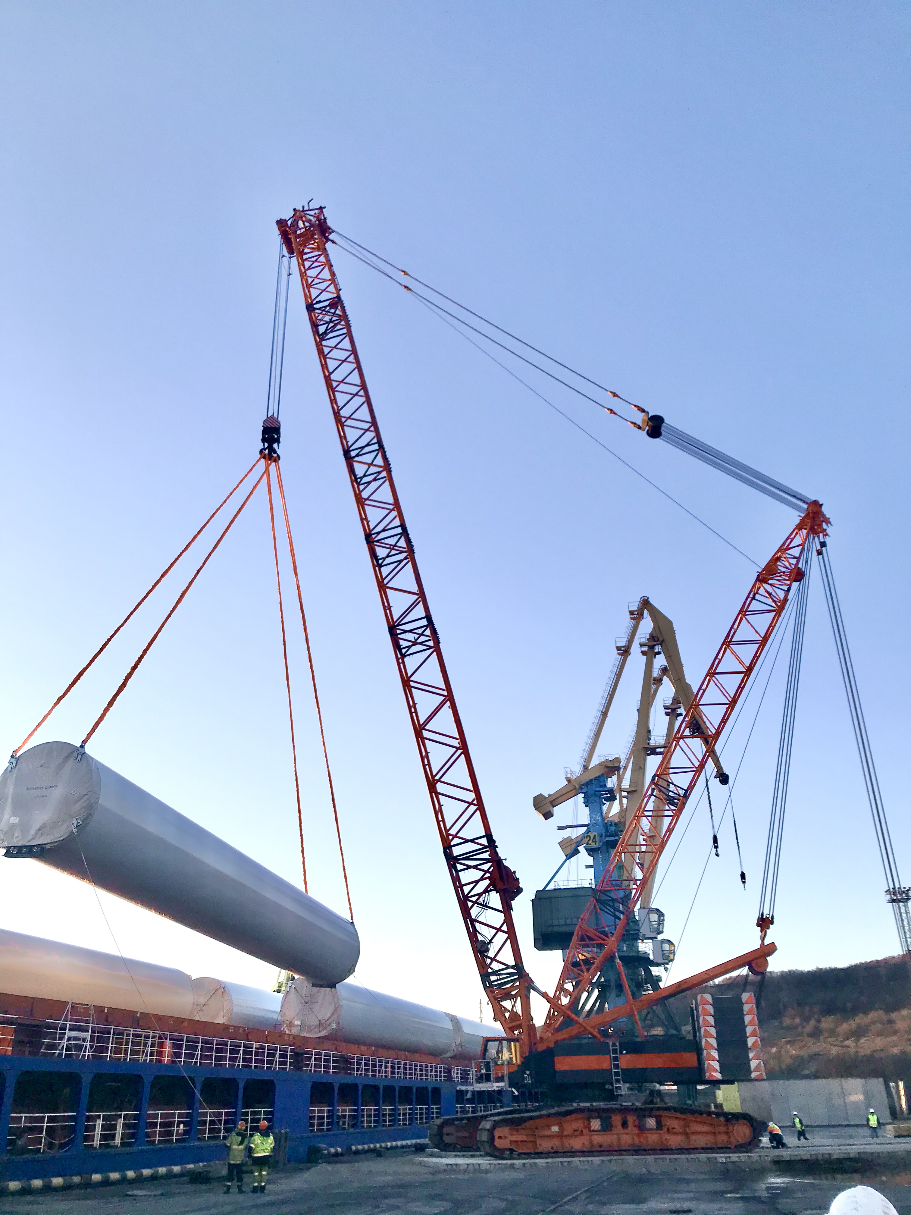 Для этих целей мы использовали наш парк автомобильных и гусеничных кранов. Особенную гордость нашей компании представляют собой автокраны Libherr LTM-1250, новый Liebherr LTM-1230 и гусеничные краны для по-настоящему грандиозных проектов, Demag CC2600, обладающий грузоподъемностью в 500 тонн и Kobelko CKE2500 (250 тонн). В помощь нашим кранам-флагманм была задействована и другая техника, с не менее интересными характеристиками.