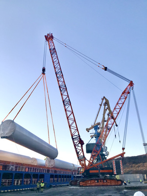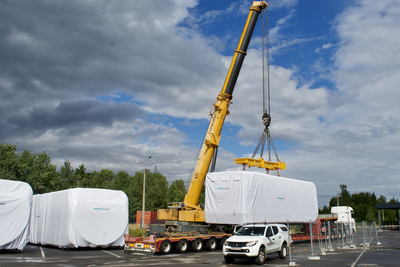 - Трансмиссия ветрогенетатора также важна – 57 единиц, массой в 67.240 кг были погружены на тралы и доставлены из Санкт-Петербурга в Мурманск