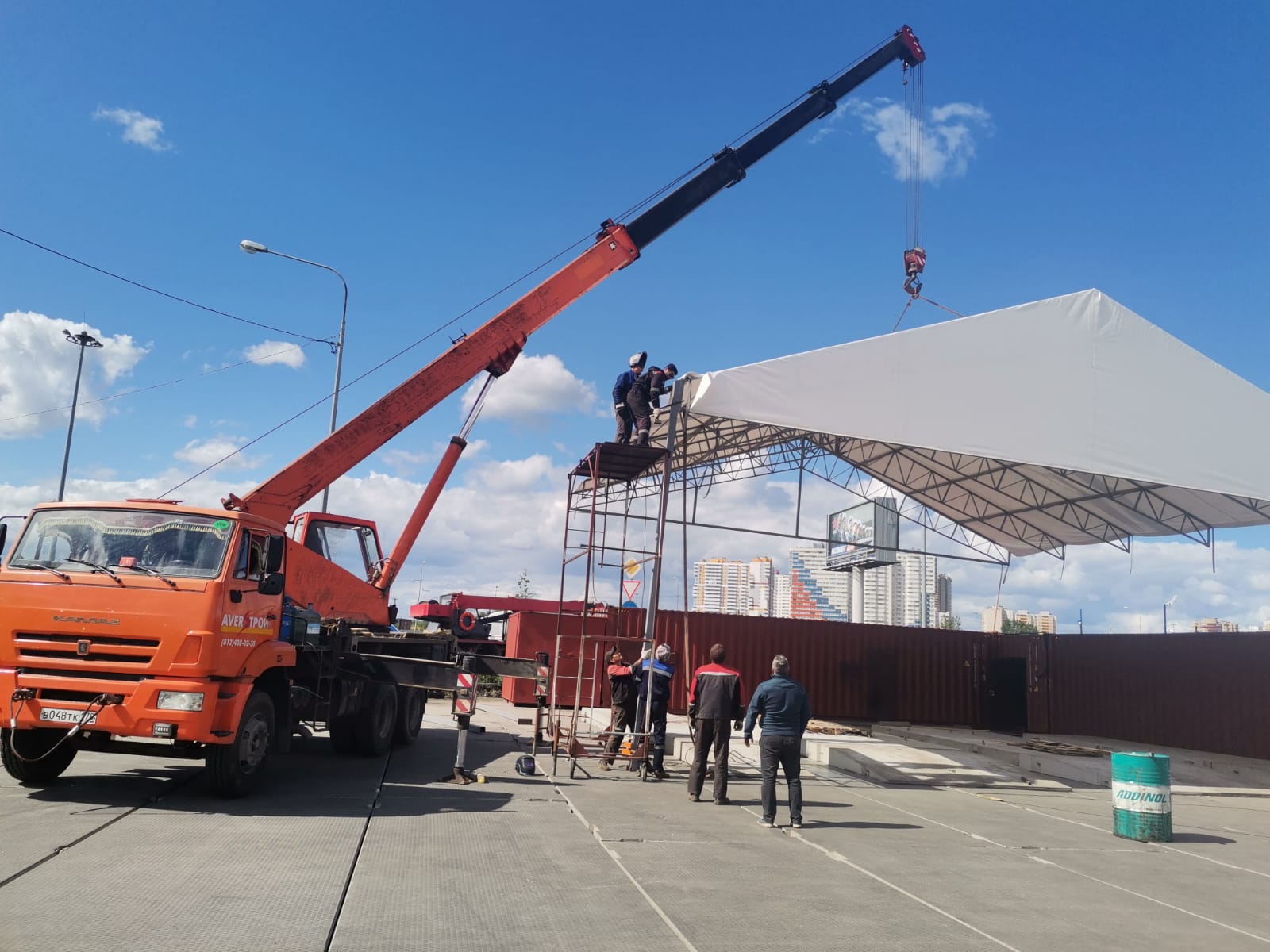 Автокран грузоподъемностью 25 тонн использовался для монтажа тента
