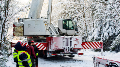 В операции участвовало по меньшей мере 20 человек – промышленные альпинисты, лесорубы, рабочие, водители, и административный персонал различных организаций. Оператор нашего автокарна Demag AC-100, Виталий, был отправлен на это серьезное задание и профессионально с ним справился. Дерево было спилено, а затем погружено на полуприцеп для дальнейшей перевозки.