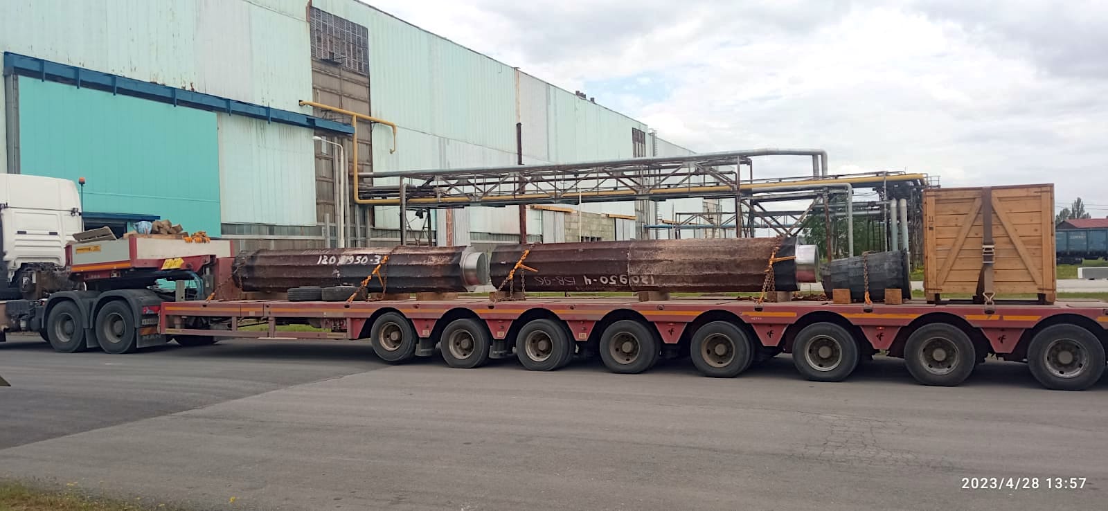 А тем временем мы продолжаем наши проекты в сфере негабаритных грузоперевозок. Один из последних заказов – перевозка металлокнострукций.